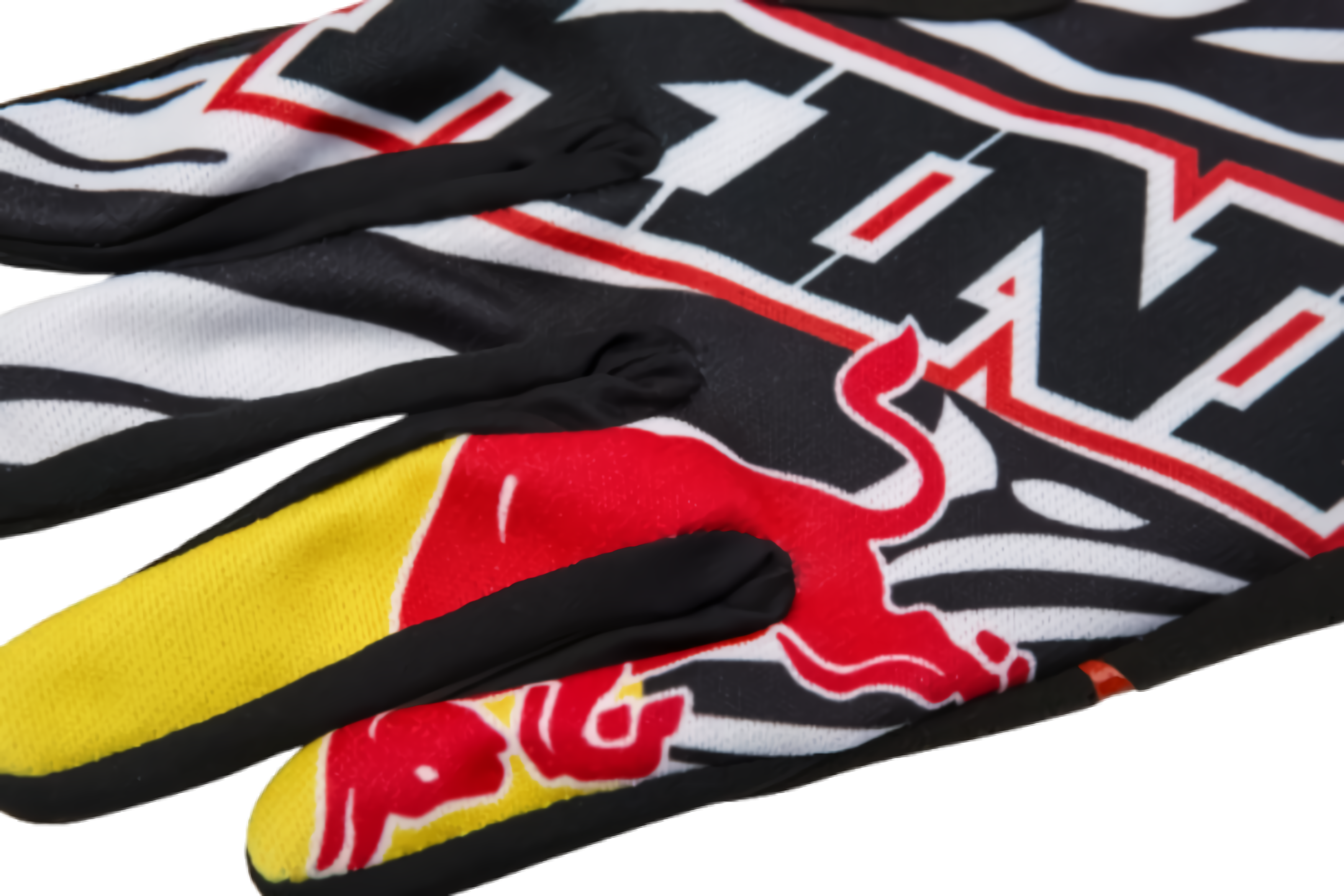 High-quality MX gloves in the KINI Red Bull design. -Artificial leather palm with padded. Reinforced thumb panel. -Directly embossed rubber surfaces on fingers and wrist. -Pressed silicon finger tips for optimum grip. -Preformed fingers. -Lycra finger sidewalls for a perfect fit. -Air-Mesh fabric for efficient air circulation. -Short neoprene cuffs with TPR velcro fastener. -Lightweight off-road gloves -Exclusively by KINI-Red Bull -Silicone print for better grip